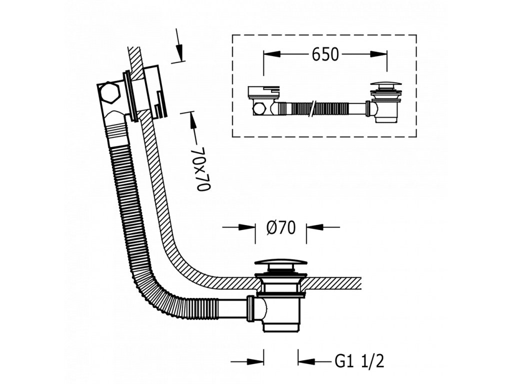 Tres 13453440 Vanová odtoková souprava click clack s napouštěním přepadem, chrom - kovová zátka a přepad 650 mm