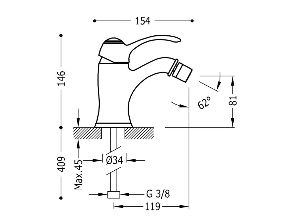 TRES-CLASIC 24212001AC Jednopáková bidetová baterie - nerez