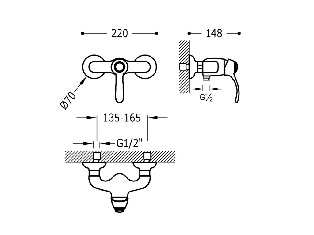 Sprchová nástěnná baterie s příslušenstvímRozteč připojení: 150 mm