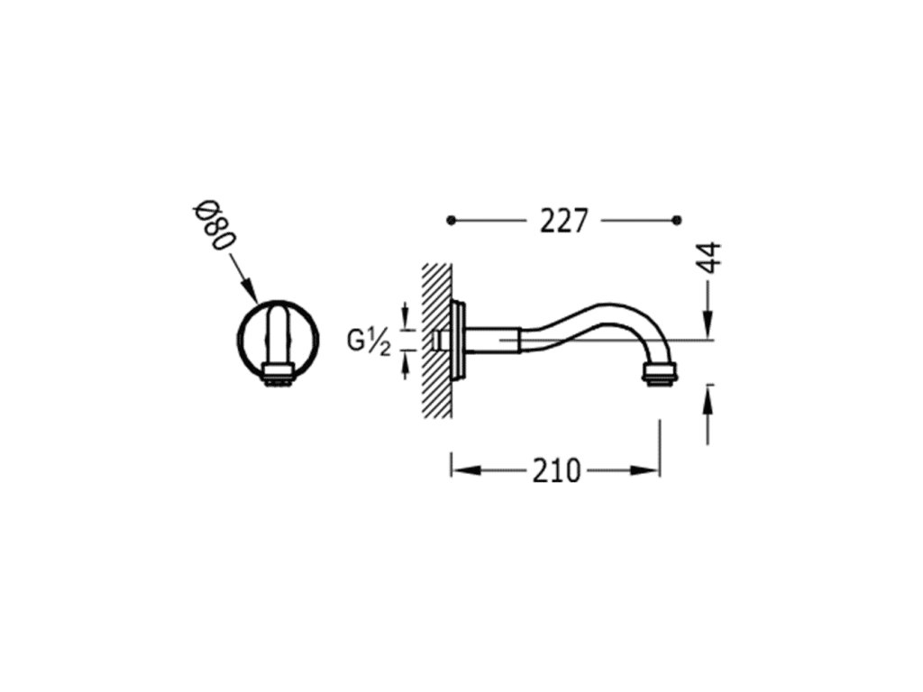 Nástěnné výtokové ramínkoDélka: 210 mm
