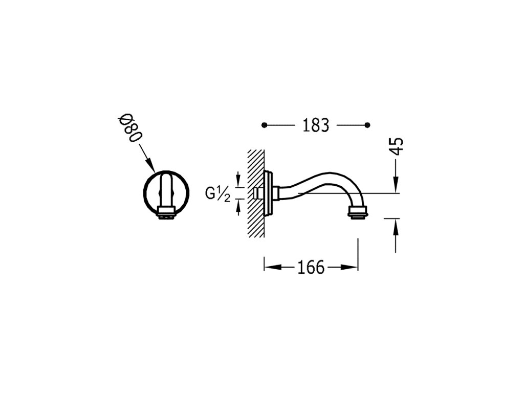 Nástěnné výtokové ramínkoDélka: 166 mm