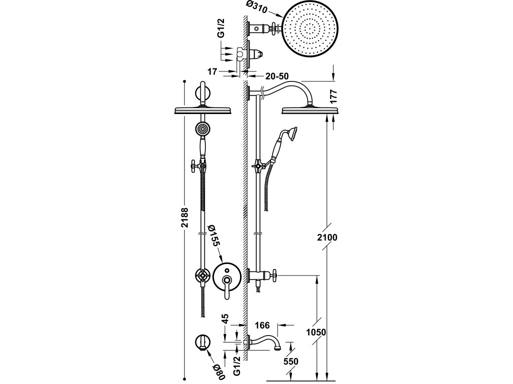 - Pevná sprcha Ø 310 mm. s kloubem