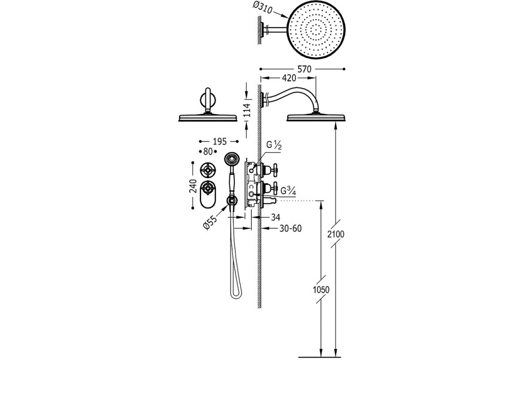 - Sprcha, proti usaz. vod. kamene Ø 78 mm