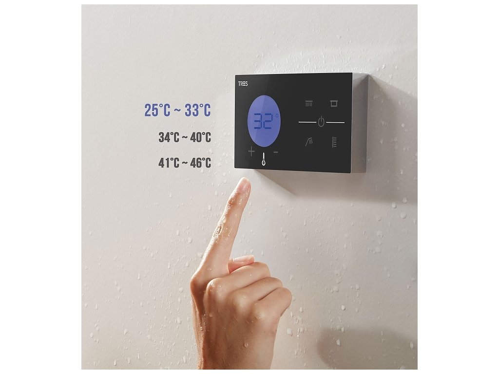 Termostatický podomítkový elektronický vanový set SHOWER TECHNOLOGY Ovládání sprchy na jediný dotek.Díky této elektronické termostatické baterii si užijete bezstarostné sprchování. Na dotykovém digitálním panelu si můžete snadno a přehledně naprogramovat teplotu a tok vody a vytvořit si tak jedinečný osobní zážitek. Spojení technologie a designu pro váš nový prožitek ze sprchy.