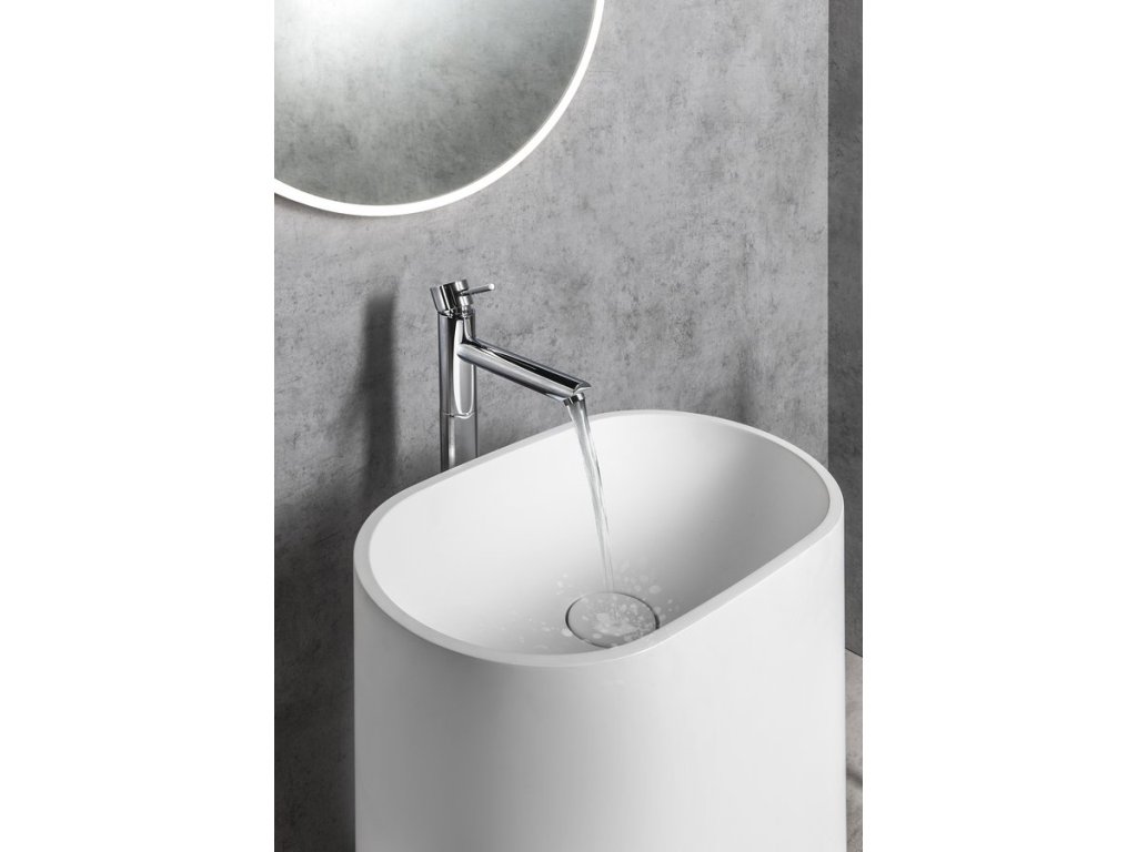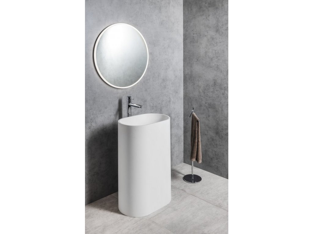 TREVA umyvadlo volně stojící 56,5x85cm, litý mramor, kryt výpusti, bílá mat