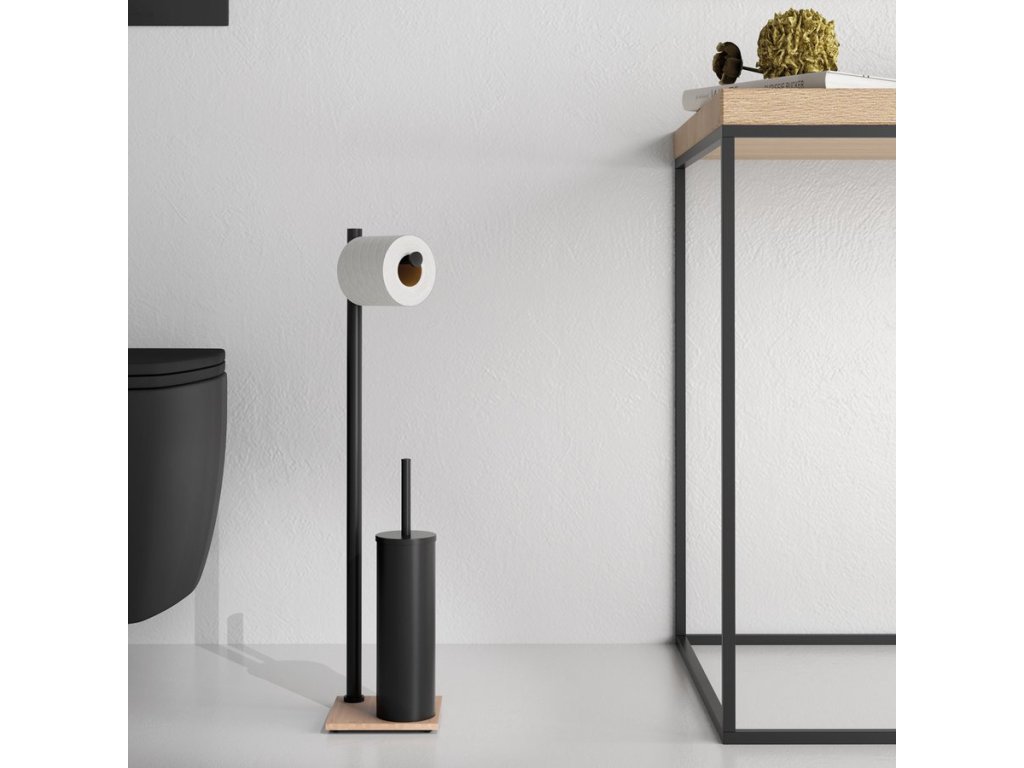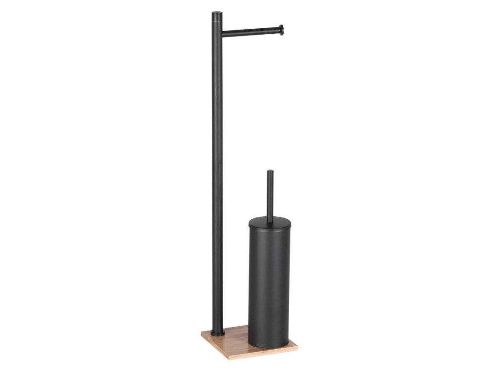 TRILLY stojan s držákem na toaletní papír a WC štětkou, hranatý, černá mat/bambus