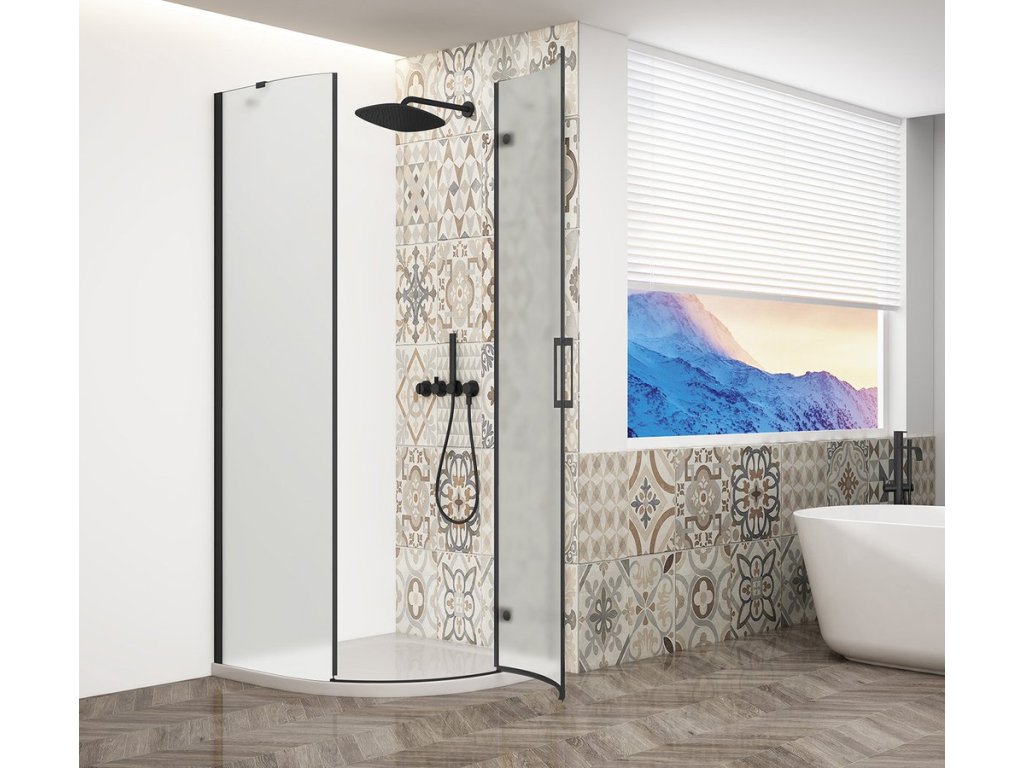 TRINITY BLACK čtvrtkruhový sprchový kout 900x900mm, matné sklo, pravé