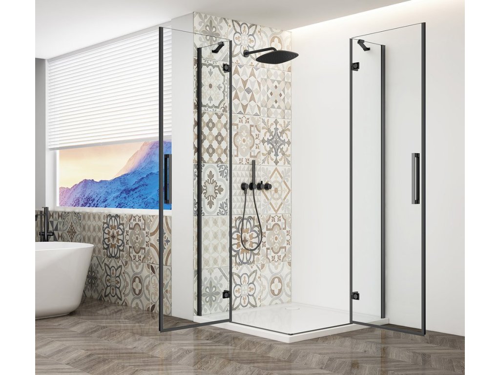 TRINITY BLACK obdélníkový sprchový kout 1100x800mm, rohový vstup, čiré sklo