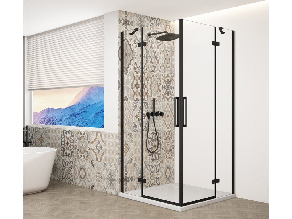 TRINITY BLACK obdélníkový sprchový kout 1200x1100mm, rohový vstup, čiré sklo