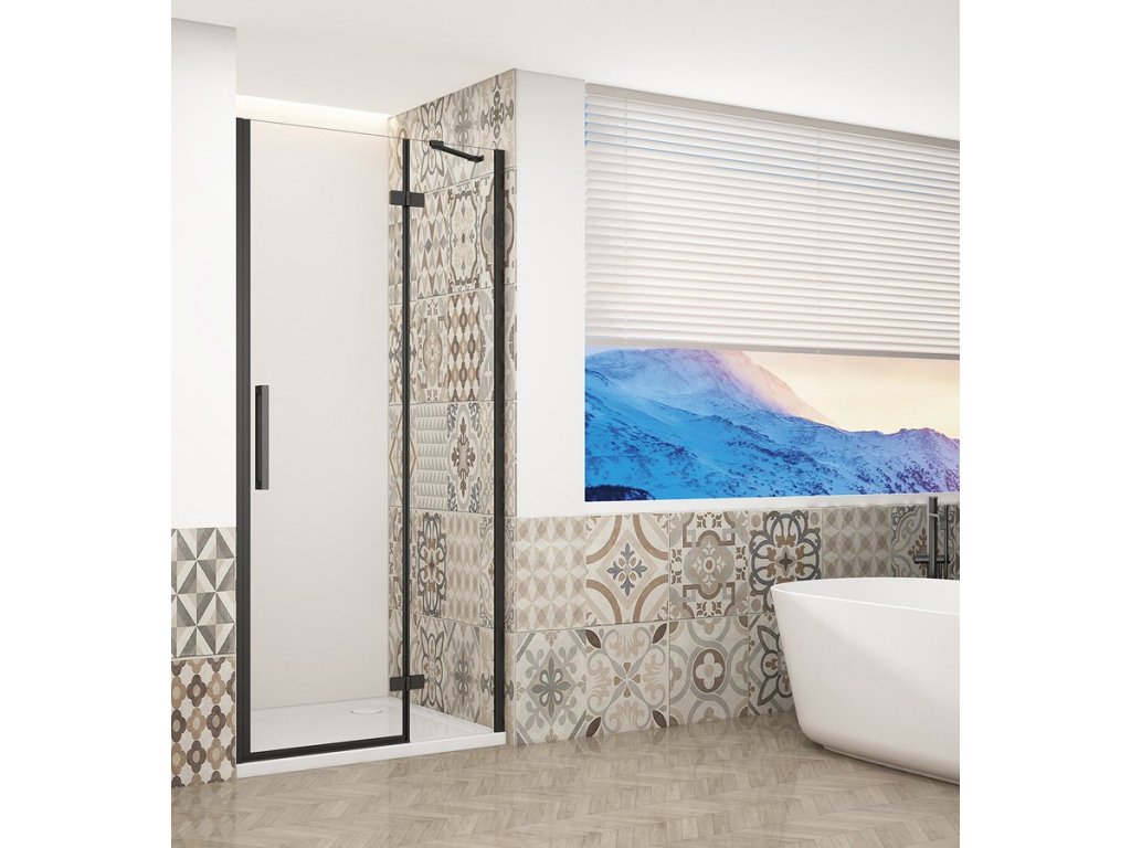 TRINITY BLACK sprchové dveře do niky 900mm, čiré sklo, pravé