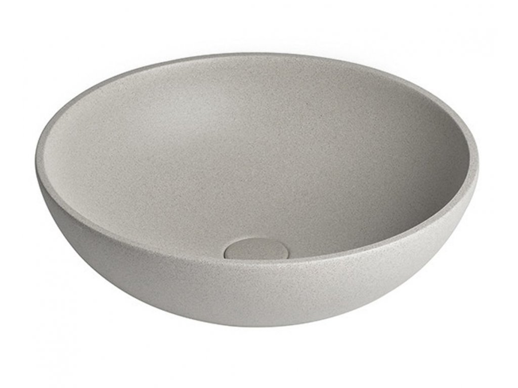 TURF betonové umyvadlo na desku, včetně výpusti, Ø 44cm, bílý pískovec