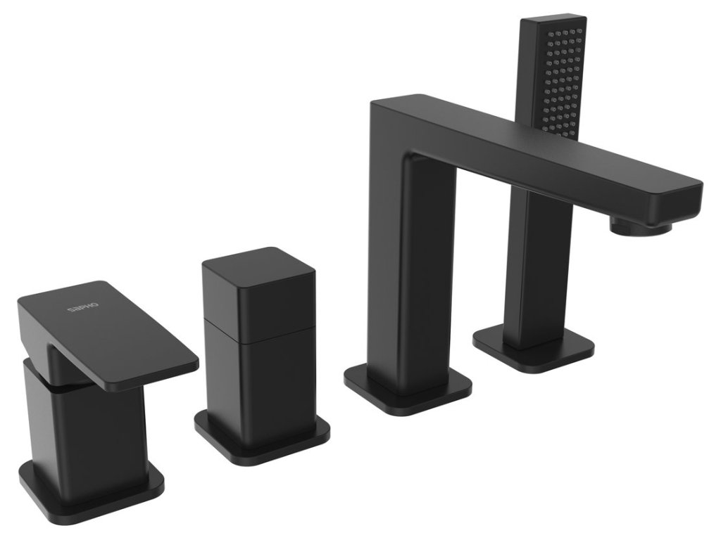 TURSI čtyřprvková baterie na okraj vany, černá mat