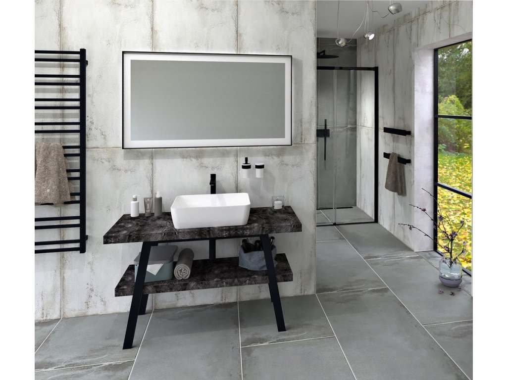 TWIGA umyvadlový stolek 110x72x50 cm, černá mat/štípaný kámen