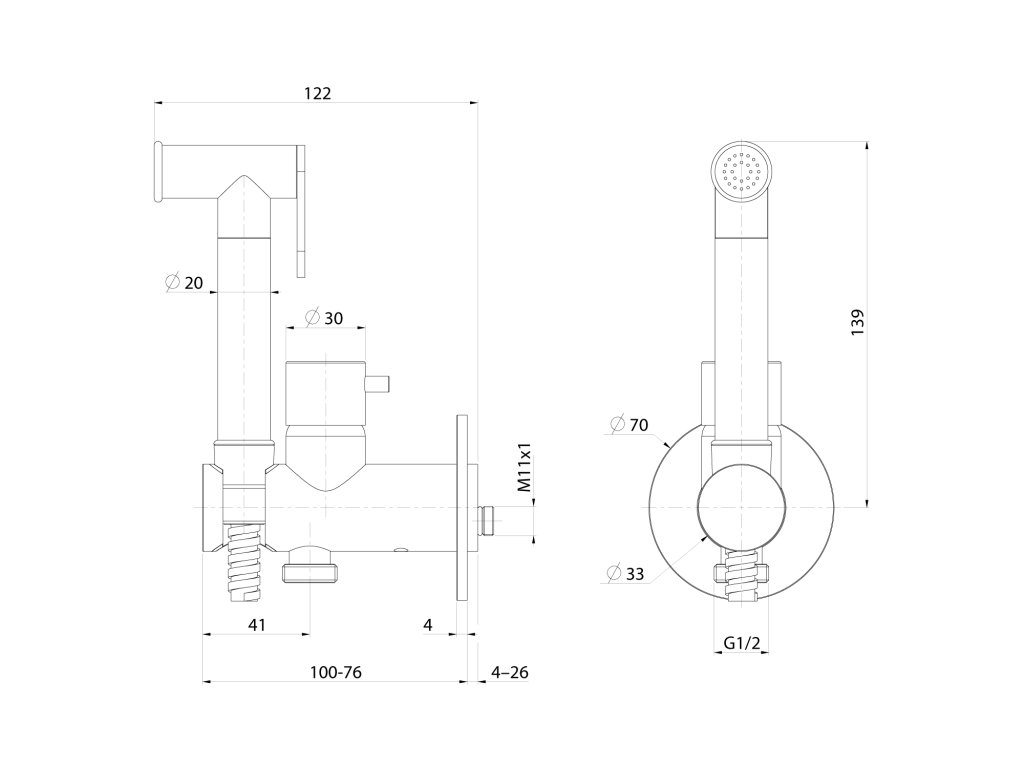 ULTRAMIX podomítková bidetová baterie se Stop sprškou, kulatá, zlato mat