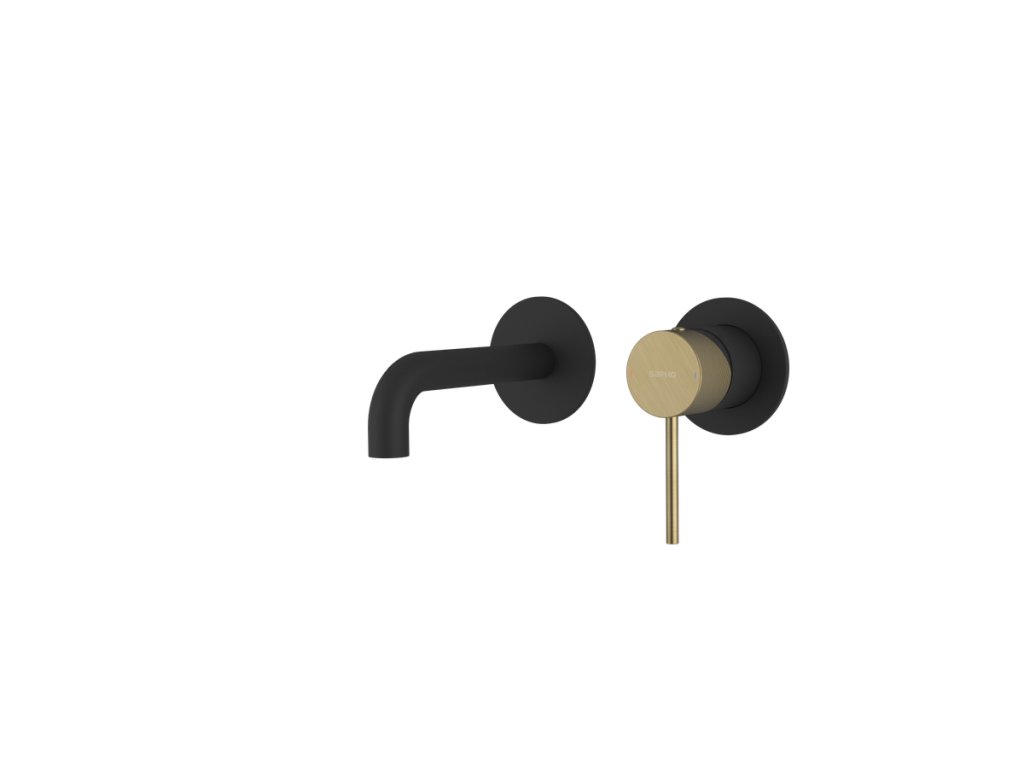 ULTRASAN podomítková dvouprvková umyvadlová baterie, hubice 15cm, černá mat/zlato mat