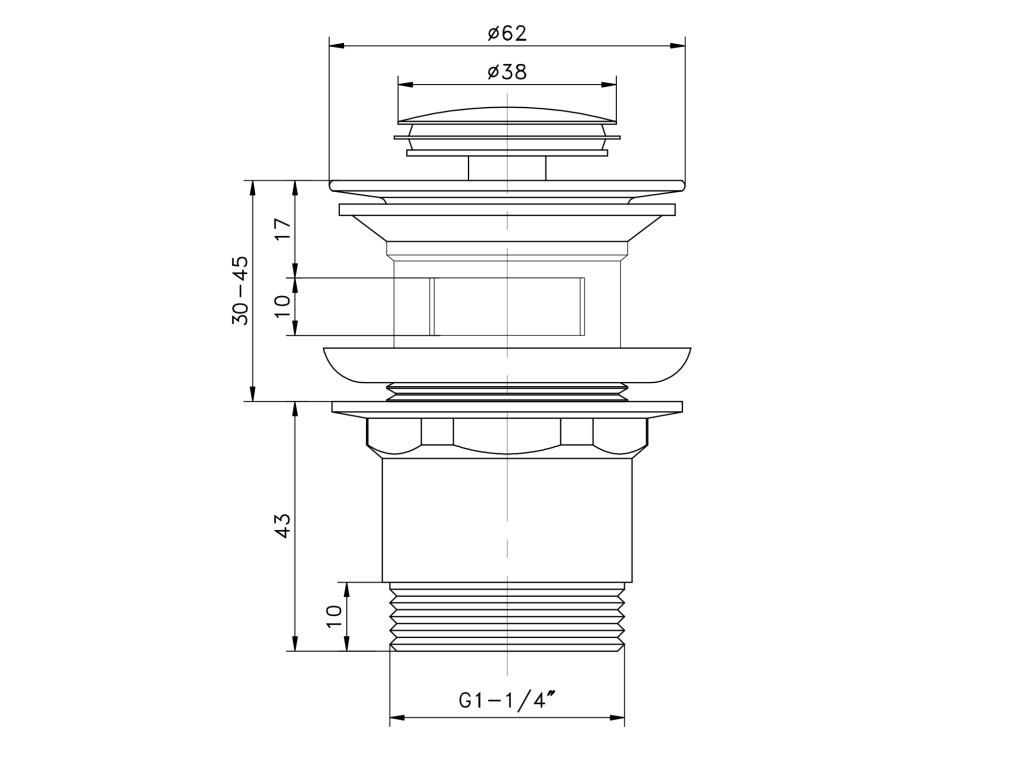 Umyvadlová výpust 5/4“, click-clack, malá zátka, 30-45mm, chrom