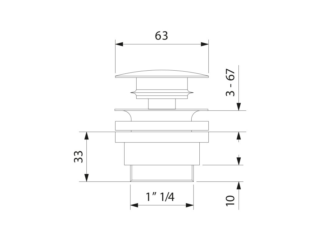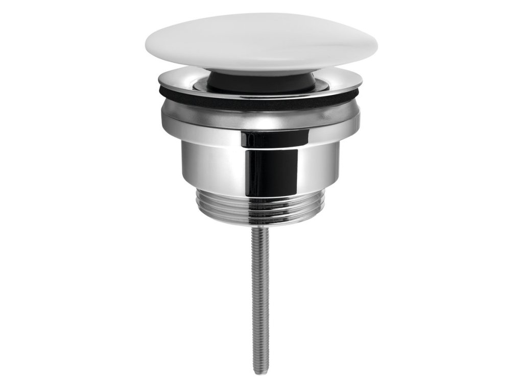 Umyvadlová výpust 5/4“, click-clack, velká zátka, 5-65mm, keramika bílá