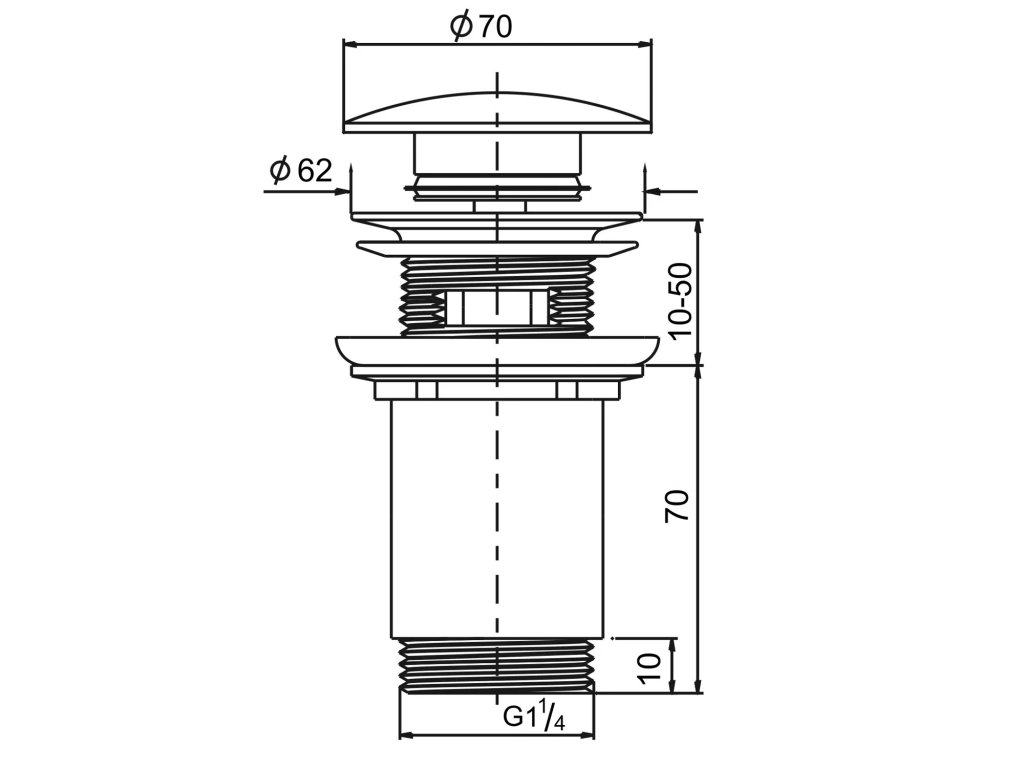 Umyvadlová výpust 5/4“; click-clack; keramická zátka; 10-50mm; černá mat