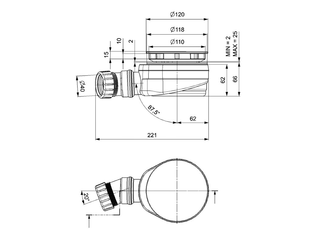 | Průměr odpadu | 40 mm |