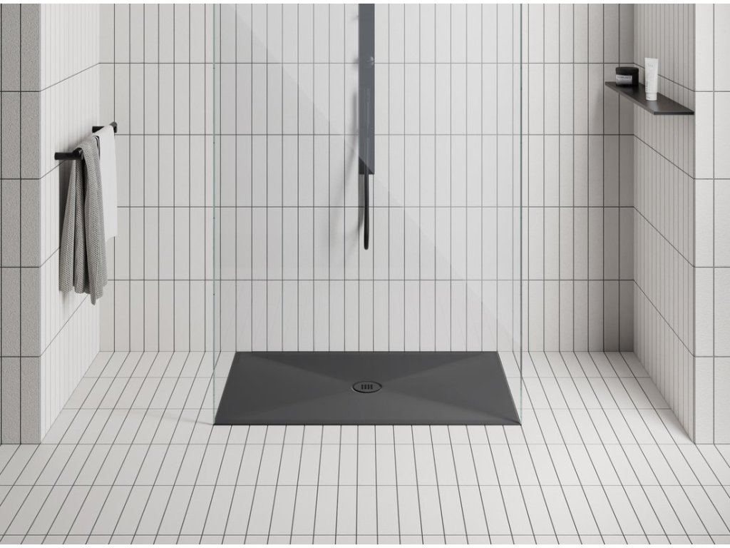 Vaničkový sifon, průměr 90mm, DN40, nízký, krytka černá mat