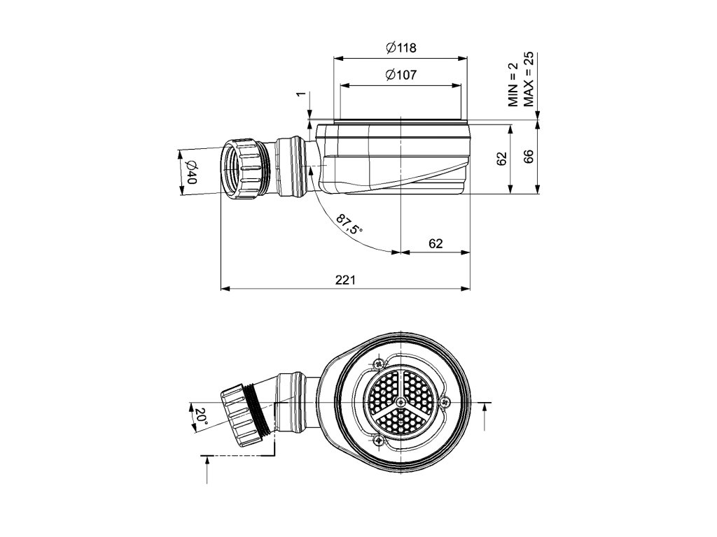 Vaničkový sifon, průměr 90mm, DN40, nízký