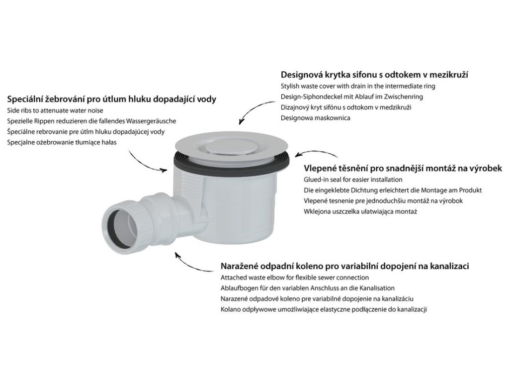 Vaničkový sifon, průměr 90mm, DN40, odtok v mezikruží, krytka bílá