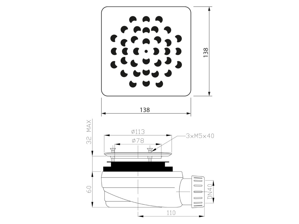 | Průměr odpadu | 40 mm |