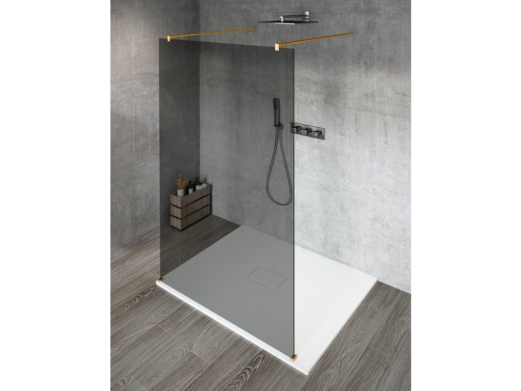 VARIO GOLD MATT jednodílná sprchová zástěna do prostoru, kouřové sklo, 1400 mm