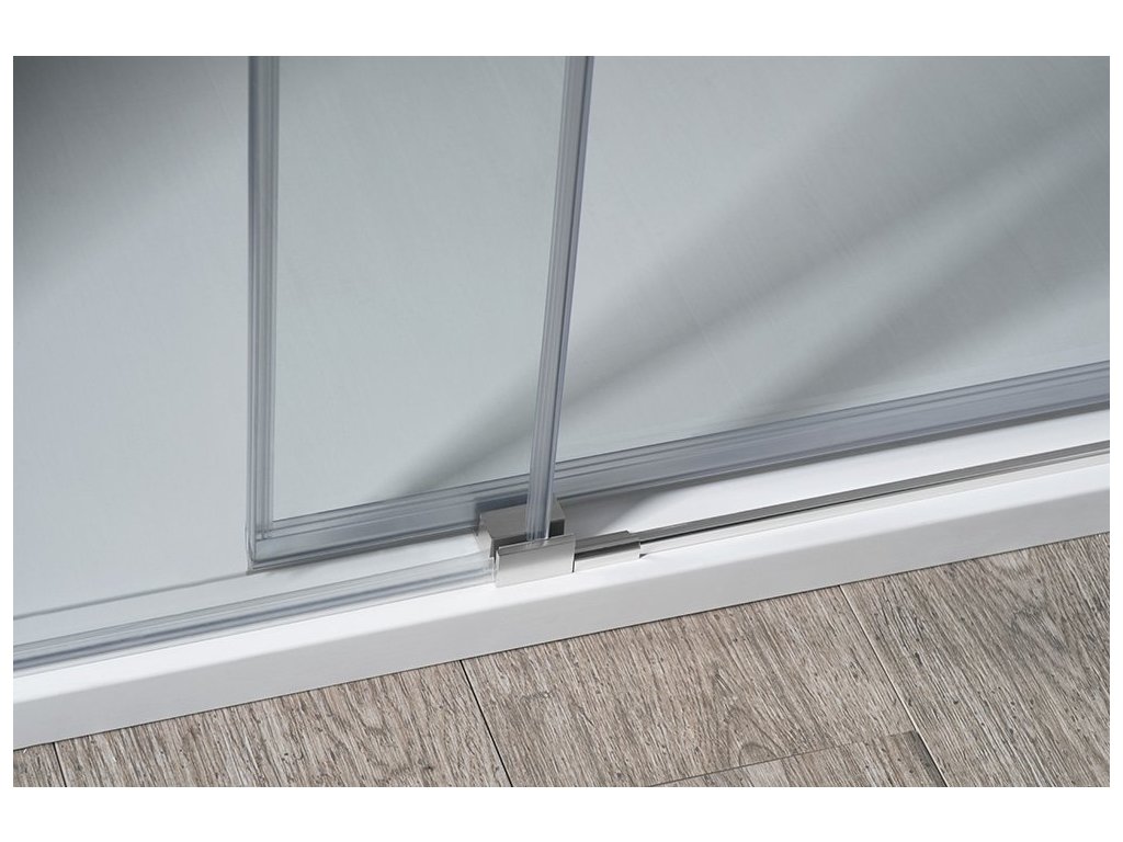 - Sklo dveří je volně zavěšené bez spodního vodícího profilu