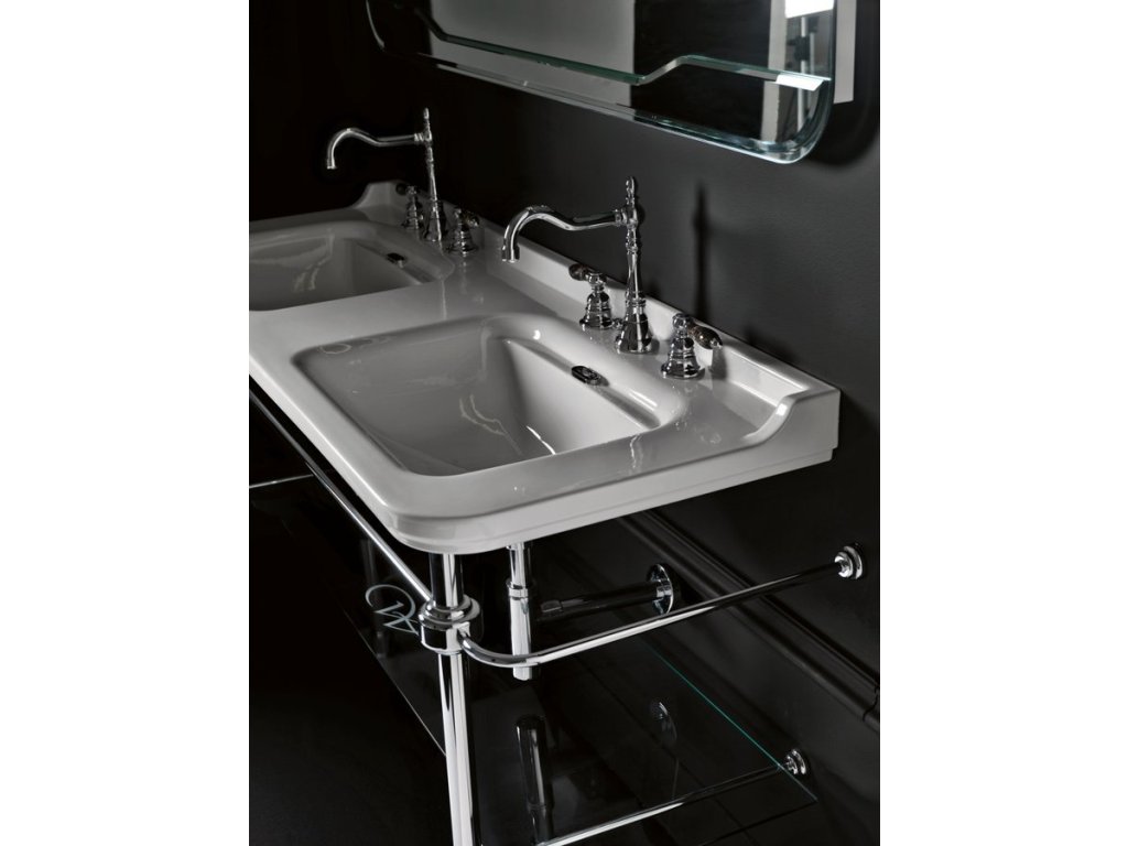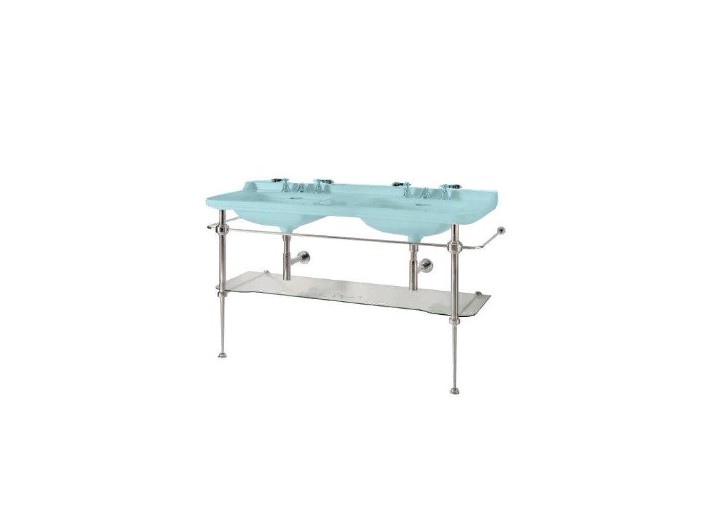 WALDORF konstrukce pro dvojumyvadlo 150cm se skleněnou poličkou, chrom