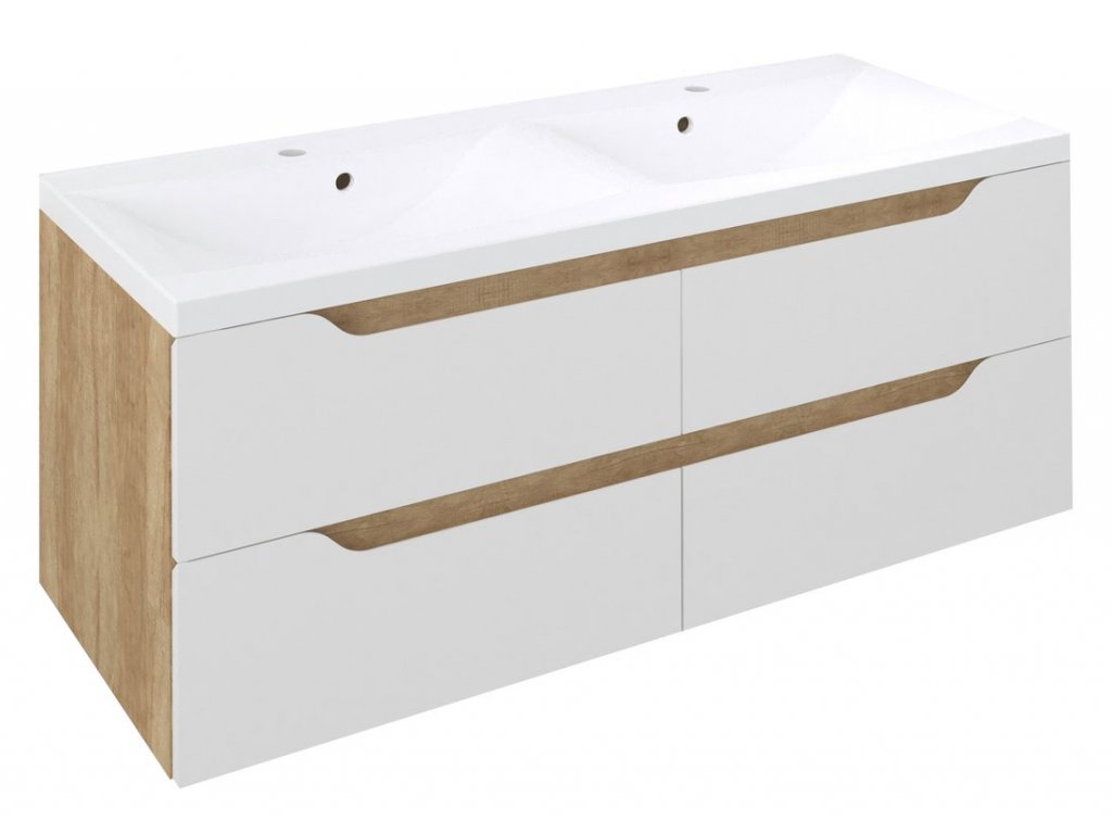 WAVE dvojumyvadlová skříňka 119,7x50x47,8cm, bílá/dub alabama