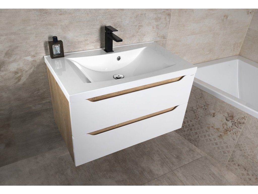 WAVE umyvadlová skříňka 79,7x45x47,8cm, bílá/dub cuneo