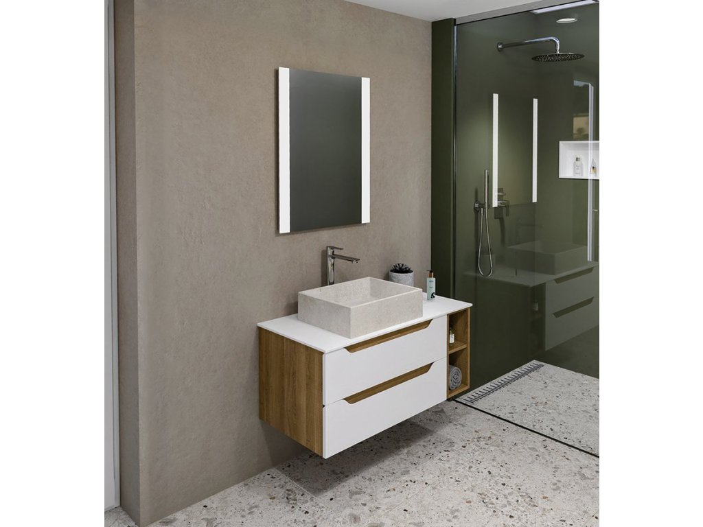 WAVE nabízíme v šesti variantách šířek umyvadlových skříněk, včetně dvojumyvadlových. Na skříňky lze použít i desky z Rockstonu, z kompozitu (HPL laminát) nebo AVICE desku a vybrat si ze široké nabídky umyvadel na postavení. V nabídce jsou i doplňkové vysoké skříňky, které společně s umyvadlovou skříňkou tvoří harmonický celek.