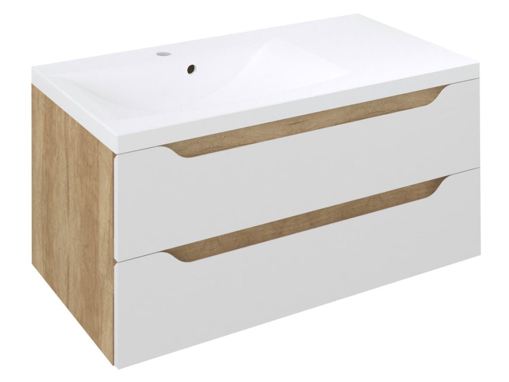 WAVE umyvadlová skříňka 89;7x45x47;8cm; levá; bílá/dub alabama