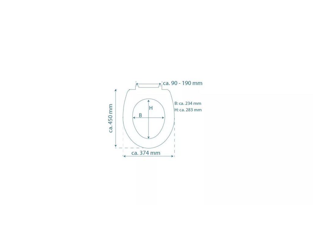 UNIVERZÁLNÍ TVAR: Díky univerzální standardní velikosti a tvaru se sedátko hodí na standardní závěsné i stojací WC mísy (rozměry jsou uvedeny v technickém výkresu).