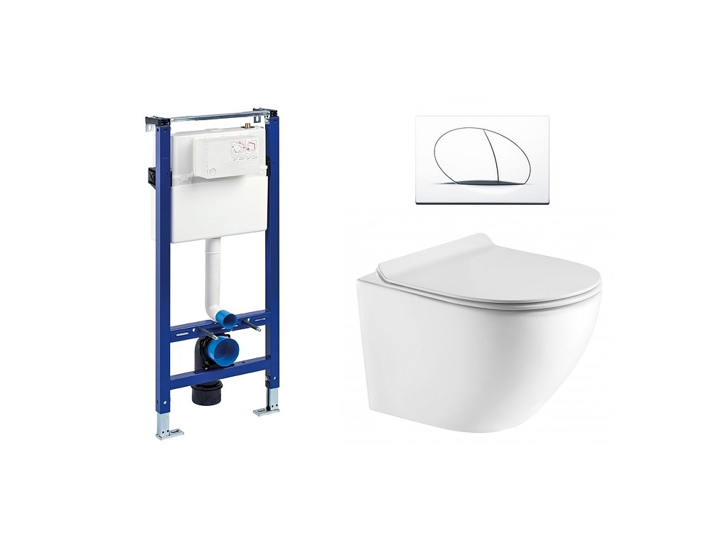 Wc set Ring Gips podmítková nádrž do sádrokartonu, mísa, sedátko a bílé tlačítko 195853 - SET(195853, 223468, OLKLT046E)