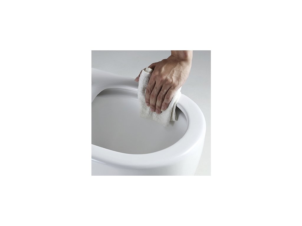 Kromě toho lze bezokruhové klozety velice snadno ošetřovat, protože ve vysoce frekventovaných oblastech odpadá obzvláště náročné čištění splachovacího kruhu. Tak se čištění obzvláště veřejně přístupných sanitárních prostor značně zjednoduší a zkrátí.