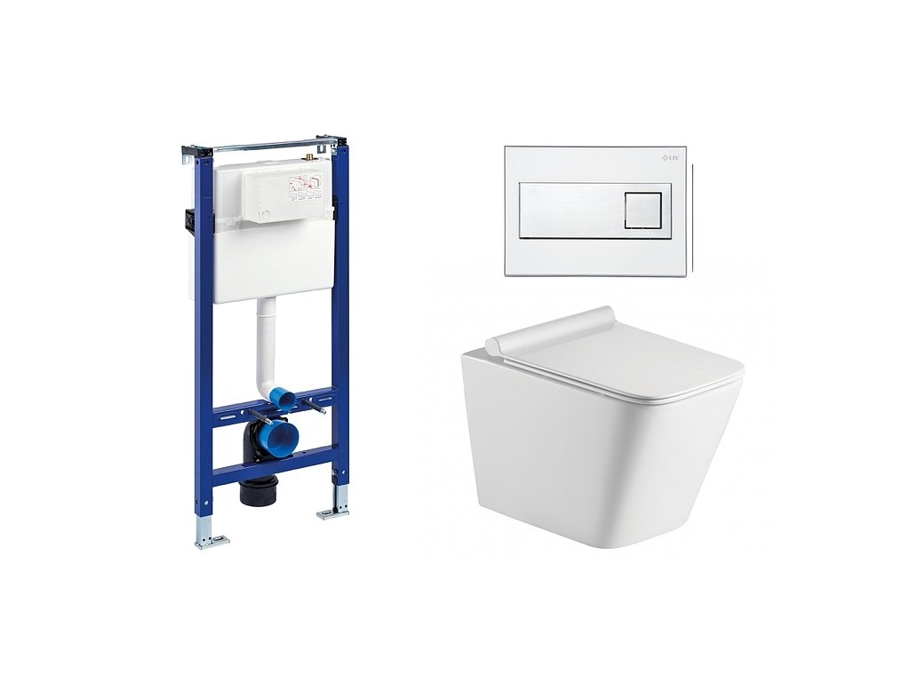 Wc set Square Gips podmítková nádrž do sádrokartonu, mísa, sedátko a tlačítko bílá/chrom 73730 - SET(223468, 73730, OLKLT052E)