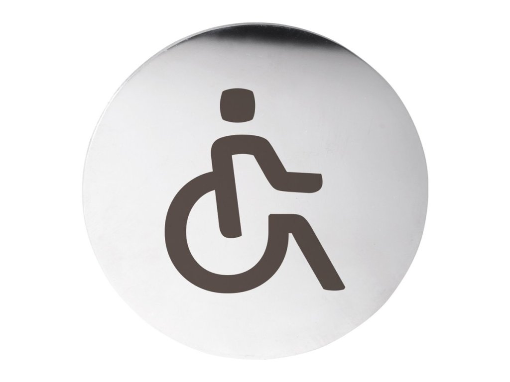 Cedule WC vozíčkář; Ø 75mm; nerez mat