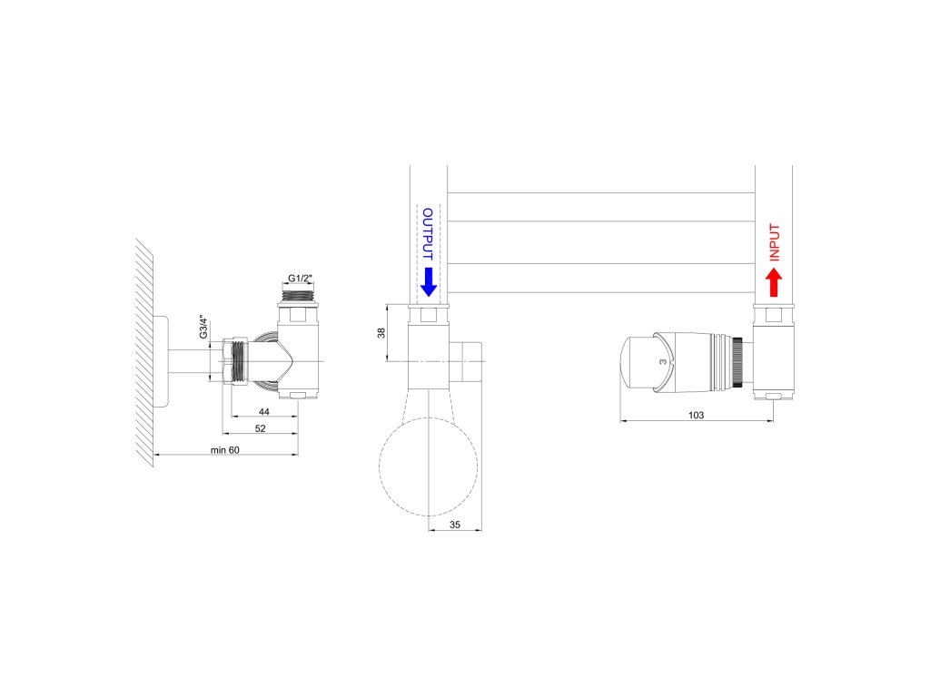 Ventil s termostatickou hlavicí: Integrovaný termostat udržuje nastavenou teplotu okolí. Termostatická hlavice musí být v místě přívodu teplé vody (mimo MONO ONE).