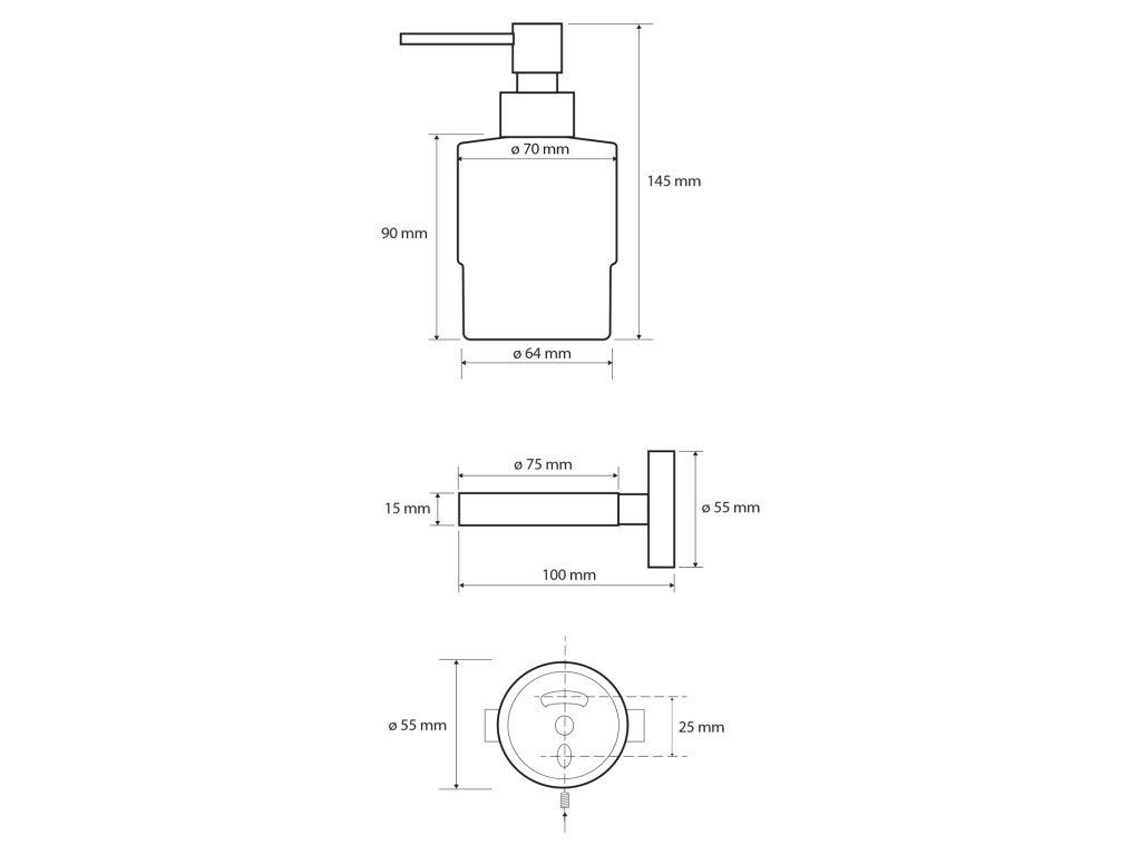 X-ROUND COPPER dávkovač mýdla 200ml, mléčné sklo, měď mat