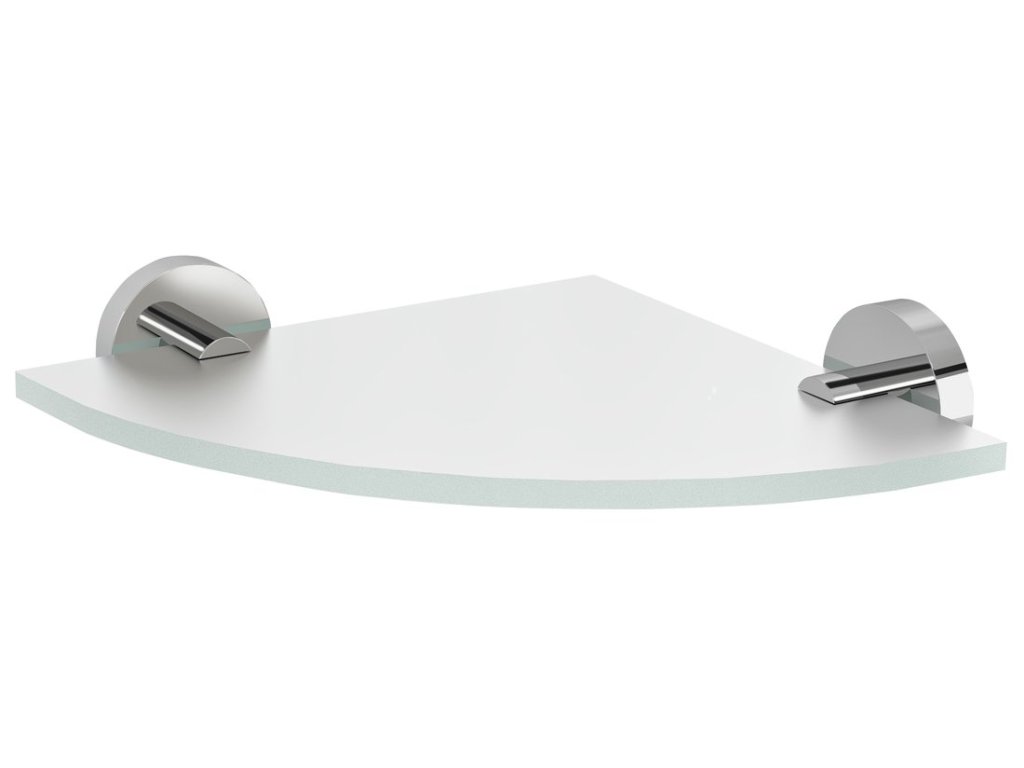 X-ROUND skleněná police rohová; čtvrtkruhová 200x200mm; chrom/mléčné sklo