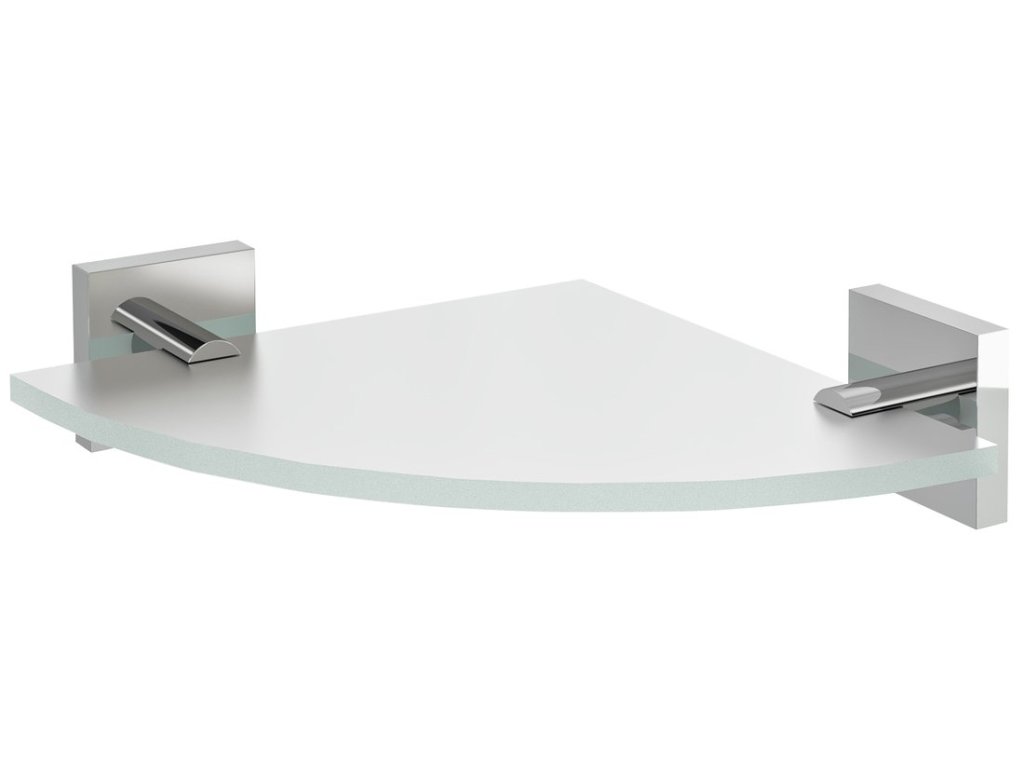 X-SQUARE skleněná police rohová; čtvrtkruhová 200x200mm; chrom/mléčné sklo