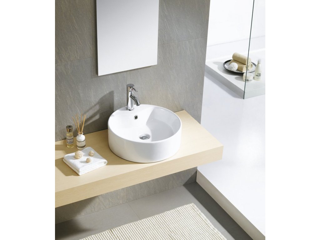 YAKARTA keramické umyvadlo na desku; Ø 46cm; bílá
