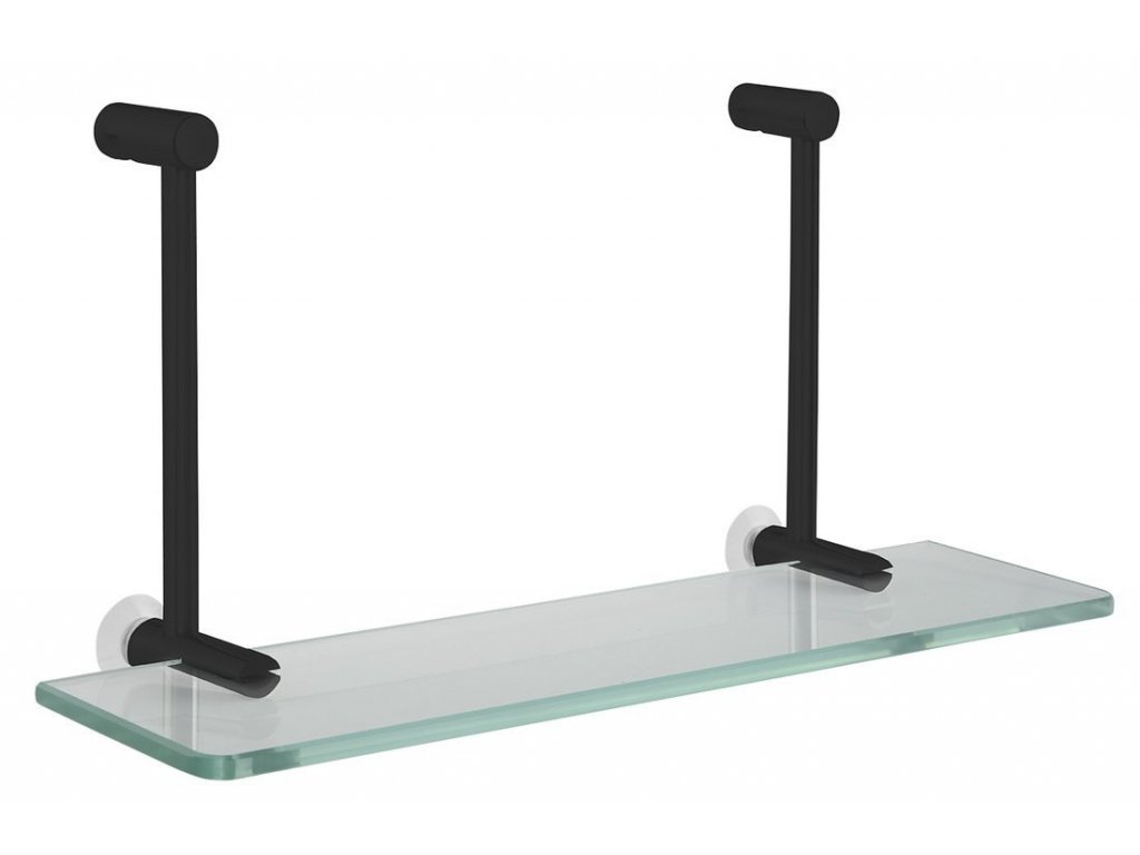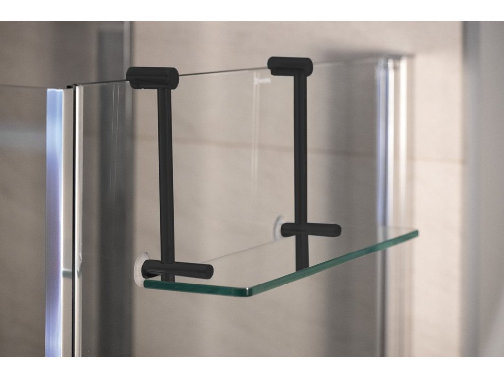 Závěsná skleněná polička na sprchovou zástěnu 400x180x125mm, černá mat