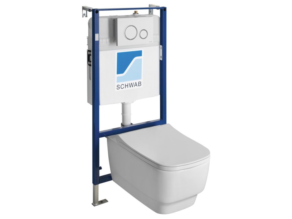 BELLO závěsné WC Rimless s podomítkovou nádržkou a tlačítkem Schwab, bílá