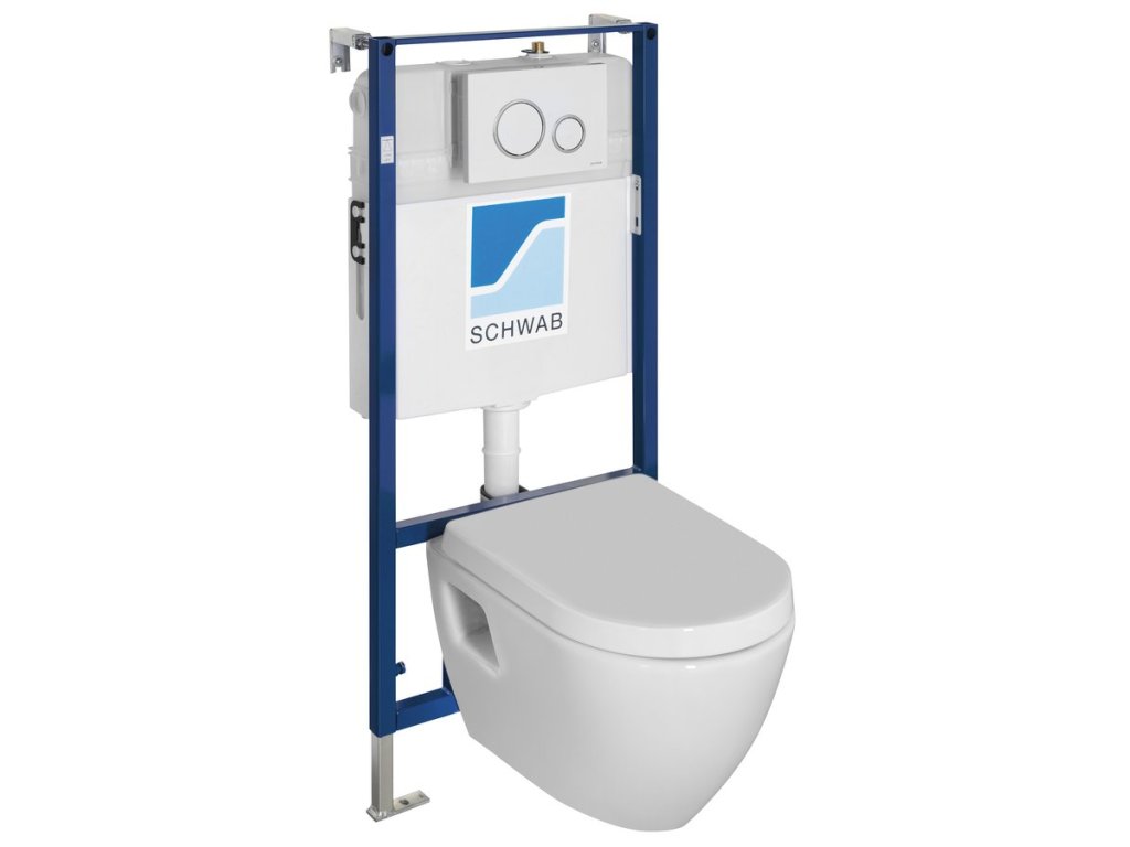 Závěsné WC NERA s podomítkovou nádržkou a tlačítkem Schwab, bílá