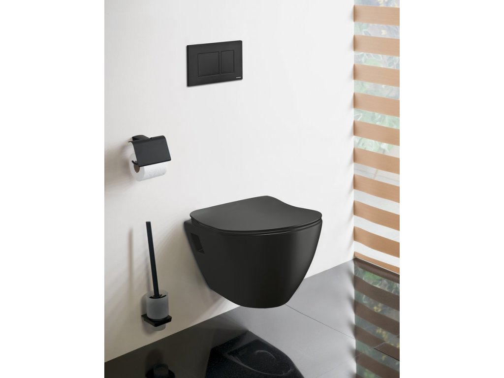 Závěsné WC PAULA s podomítkovou nádržkou a tlačítkem Schwab, černá mat