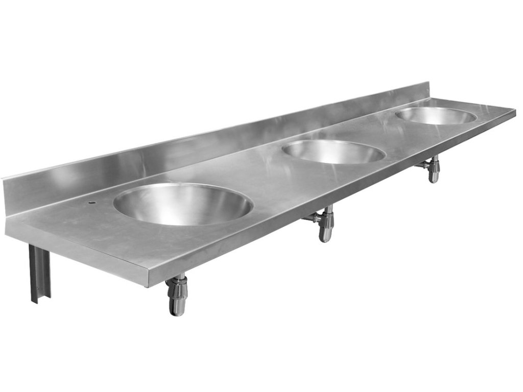 Závěsný pult se třemi umyvadly 1800x254x550 mm, nerez mat