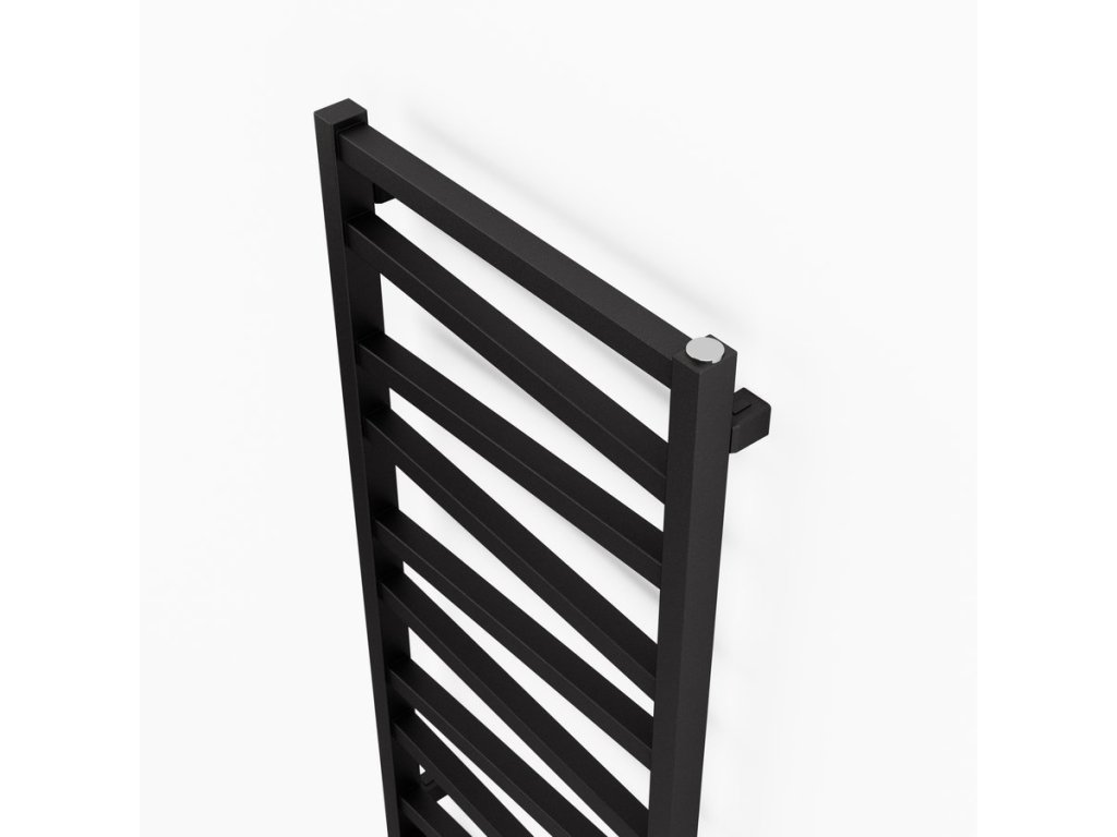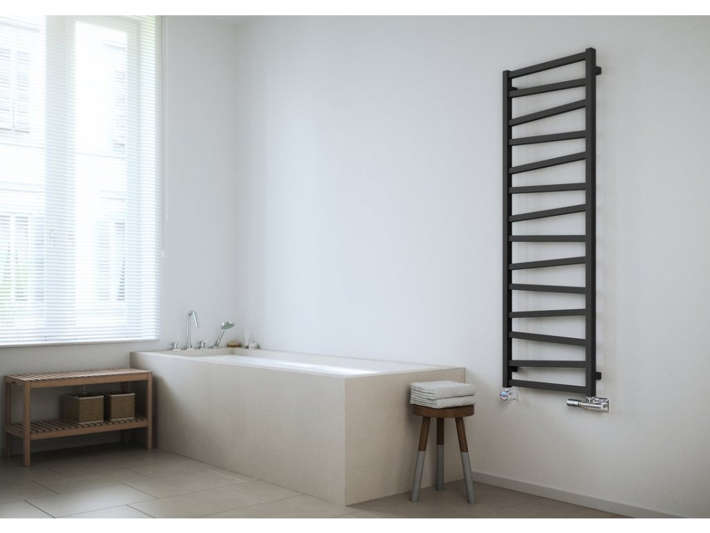 Otopné těleso s různoběžnými středovými trubkami podtrhne design koupelny. Možná kombinace ústředního a elektrického vytápění. V nabídce v barvách bílá, strukturální antracit a černá mat.